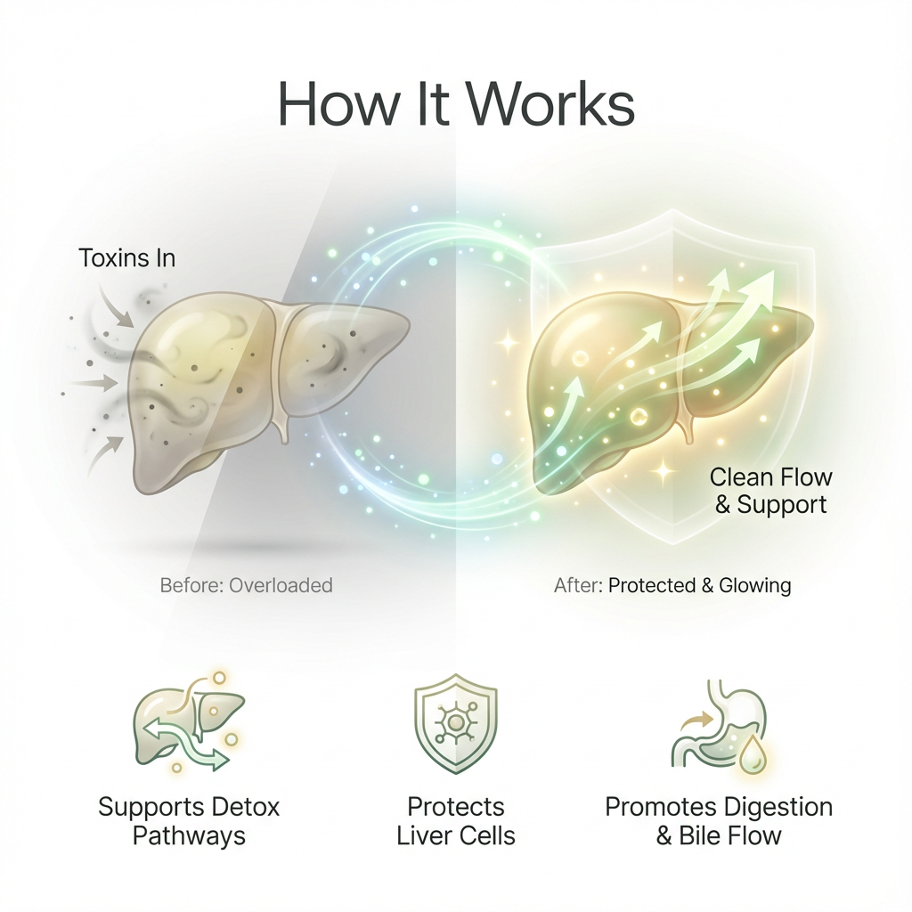 Nivoro Liver+ Advanced supports your liver’s natural detox pathways and cell protection by helping the body process and eliminate built-up waste more efficiently, while also supporting the liver against oxidative stress that can reduce performance over time. It combines key liver-support ingredients like Milk Thistle, NAC, ALA, and Glutathione support, alongside traditional botanicals such as Dandelion and Artichoke to promote healthy bile flow, digestion, fat metabolism, and a lighter feeling after meals. Unlike harsh cleanses, it is designed for gentle daily use, helping support long-term liver function, reduce bloating, and improve overall energy and wellbeing with consistent use